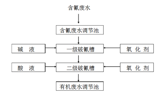 氫氰根離子用一般的絮凝沉淀法不能將其直接去除,必須通過氧化作用,打破其化學鍵的結(jié)構(gòu),最終使其降解,形成CO2和N2得已去除。
