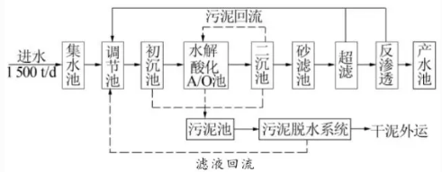 設計處理規(guī)模1500m3/d,回用水量800m3/d,回用率50%以上。