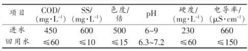 RO出水COD、色度和SS分別為15mg/L、3倍和1mg/L,系統(tǒng)去除率分別達96.7%、96.3%和99.8%。各指標都低于設計回用標準,回用率53%