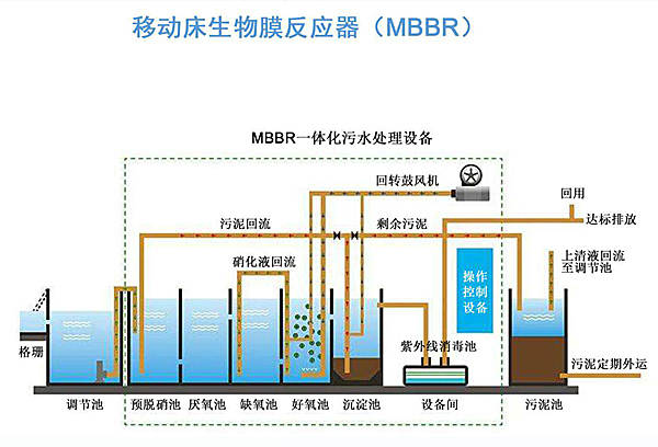 3、MBBR工藝中可不需要污泥回流設備,不需反沖洗設備,減少了設備投資,操作簡便,降低了污水的運行成本;
